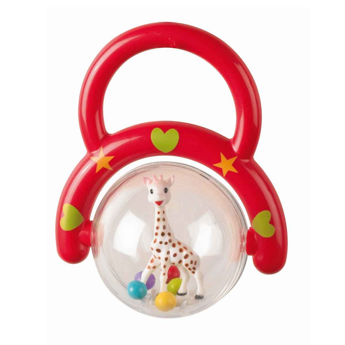 This rattle is perfectly sized for little hands to hold with ease. The handle is designed for simple gripping, letting your baby enjoy playing with the spinning ball that features Sophie the Giraffe. Inside, vibrant beads create a delightful rattling noise with every shake.