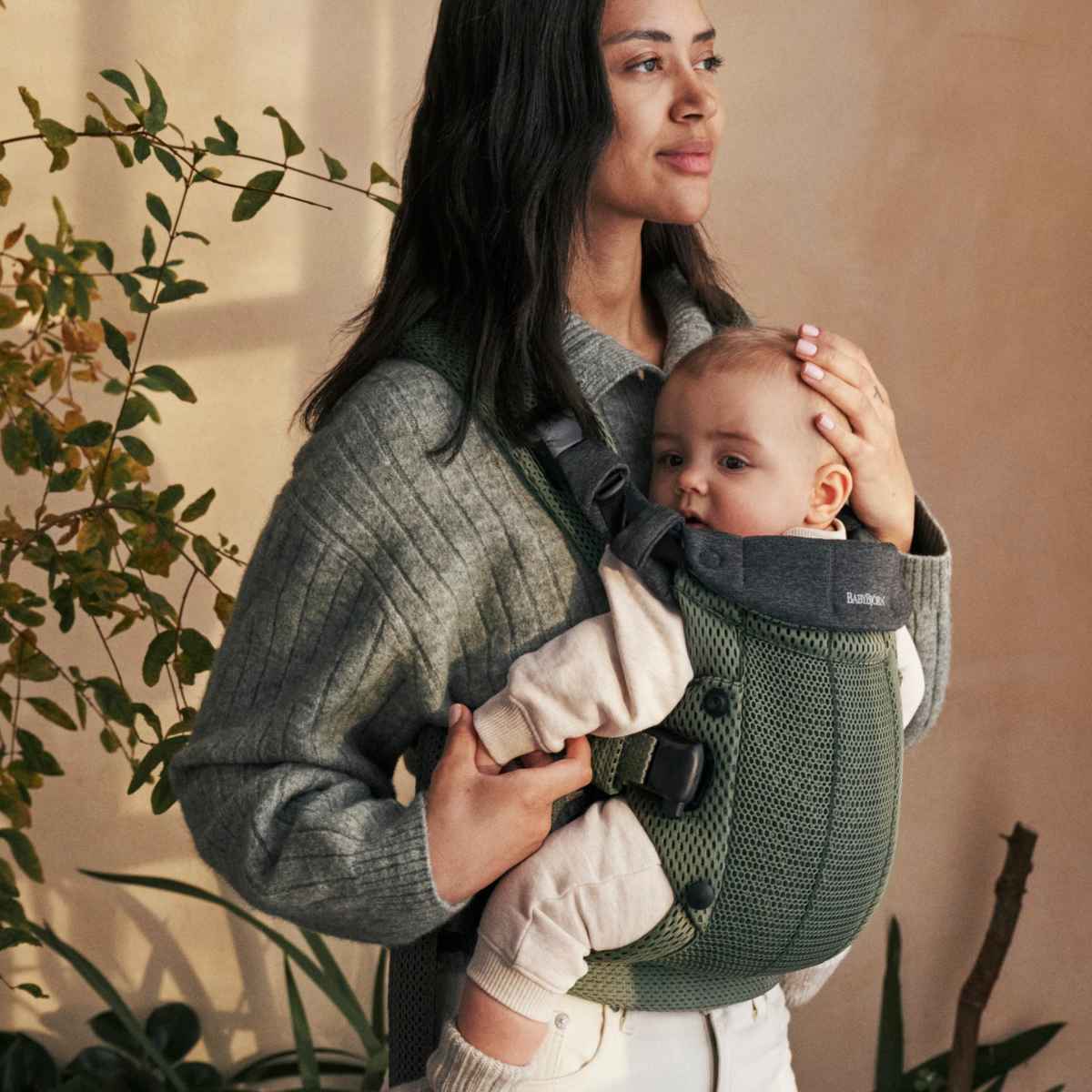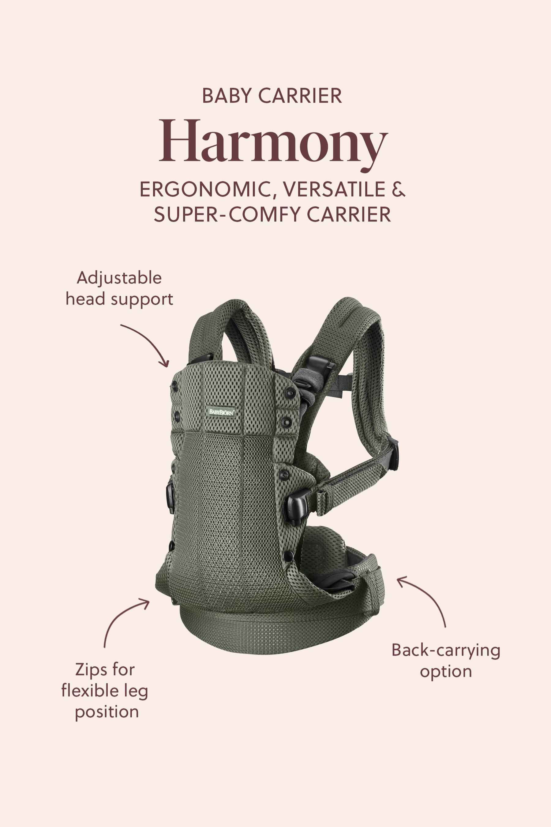 The BabyBjörn Harmony Baby Carrier in Dark Green 3D Mesh is the perfect choice if you’re looking for a soft, flexible, and ergonomic baby carrier with a luxurious feel. Pressure-relieving waist belt and padded shoulder straps and back support make the carrier incredibly comfortable. The super-soft fabric hugs your baby and provides a feeling of closeness to one another. Easy to use, lightweight, and can easily be packed down into your pram or nappy bag.