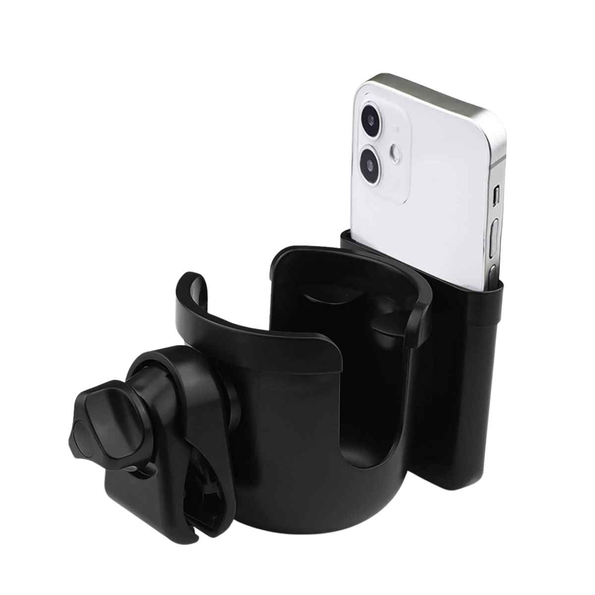 This universal Babylo 2-in-1 Stroller Cup and Phone Holder is the perfect addition to your stroller. With 360° rotation, this holder fits on most strollers and keeps your phone, water bottle, or coffee cup within reach while on the go!