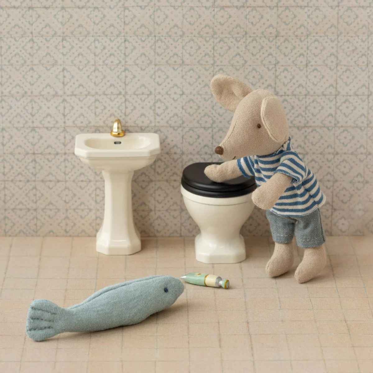 A small sink that fits the Little sister/brother mice. It fits perfectly into the bathroom in the SuitCasa mouse house.