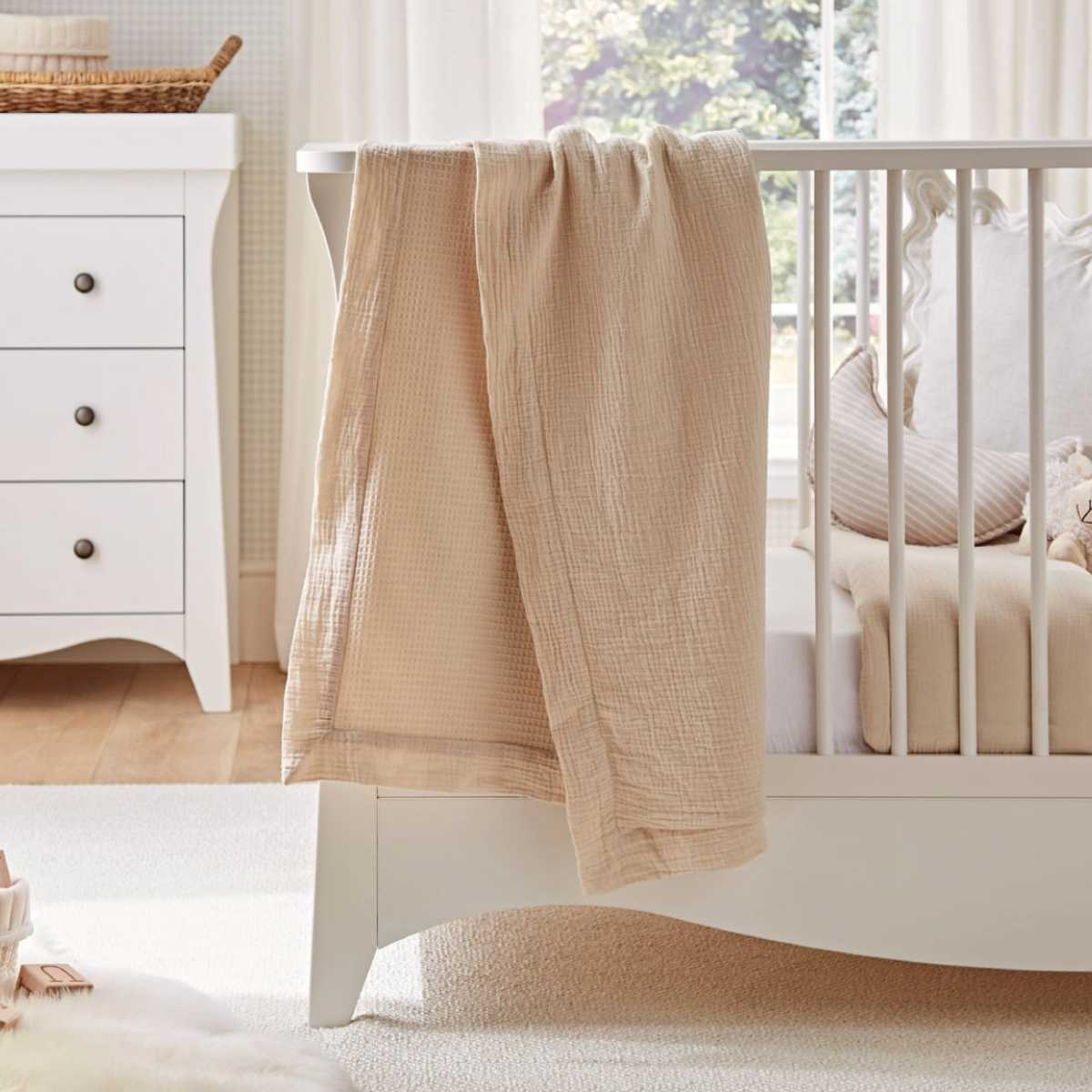 Create a calm sleep space with the CuddleCo 4 Piece Cot Bed Bedding Set in Cashmere Waffle. Designed to take the stress out of styling your little one’s bed, this set includes all the essentials for cozy nights and comfortable daytime snuggles. Made with soft, breathable cotton, each piece is gentle against delicate skin while offering the comfort. The textured waffle finish brings a neutral look that suits any nursery décor, while thoughtful details like the reversible quilt and fitted sheets make everyday use effortless. Finished with a comforting blanket for extra warmth, this set is perfect for first beds or the transition into a toddler room. Highlights - Reversible Cot Bed Quilt – Lightweight and breathable - 2 x Fitted Cot Bed Sheets - Comforter Blanket