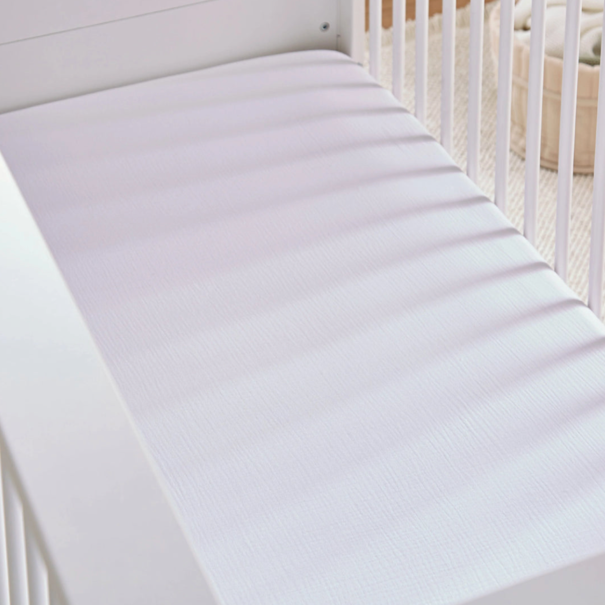 Complete your little one’s sleep space with the CuddleCo Cashmere Waffle Cot Bed Sheets, designed for everyday comfort. Made from 100% cotton, these fitted sheets are naturally soft and breathable, helping to keep your baby comfortable throughout the night. The elasticated edges provide a secure, snug fit on standard cot bed mattresses, staying firmly in place. Finished in classic neutral waffle textures, this 2-pack includes one white and one cashmere sheets perfect for mixing, matching, and coordinating with the rest of the CuddleCo collection.