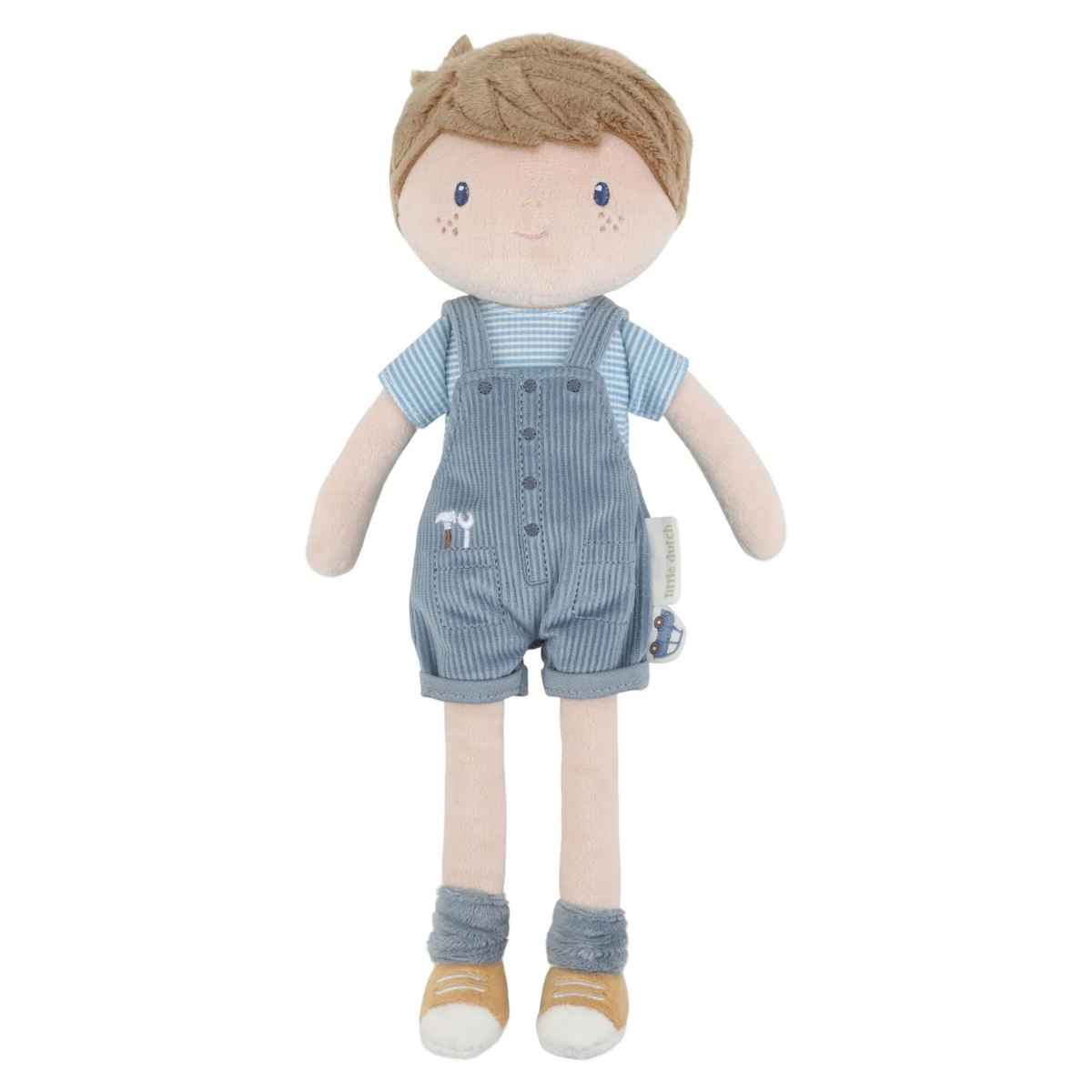 Meet Jim, a lovely cuddle doll of 35 cm. With his soft body, sturdy overalls, and cheerful striped sweater, he is always ready for a hug or adventure. Jim is made of wonderfully soft material and invites you to play together, comfort, and discover. A loyal friend for every child, every day anew.