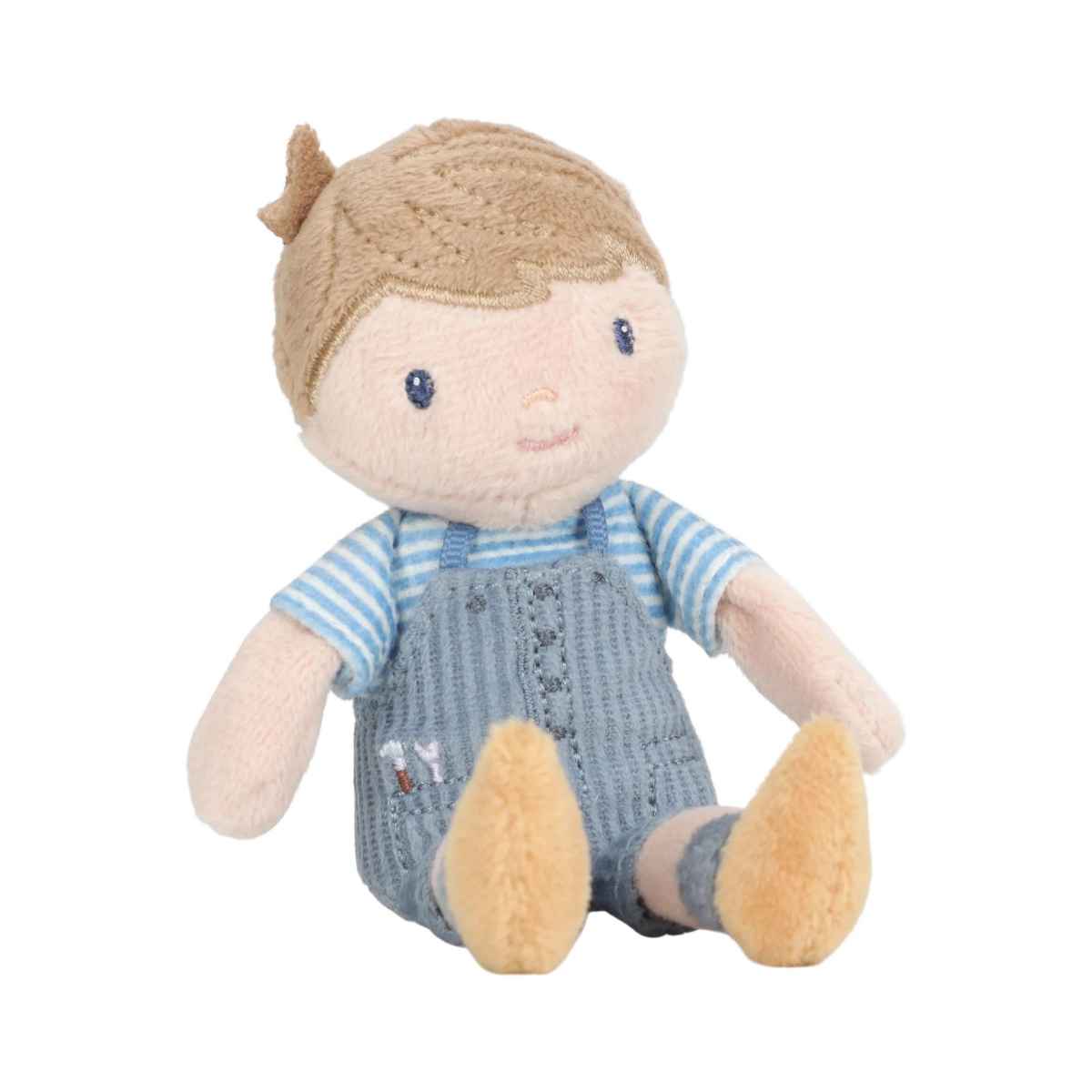Meet cuddle doll Jim, a sweet little friend measuring 10 cm tall. With his soft fabric and cute outfit, he is always ready for a hug or adventure. Jim fits perfectly in small hands and is perfect for gifting in his handy box with a cord. Ideal for playing together, comforting, or dreaming.