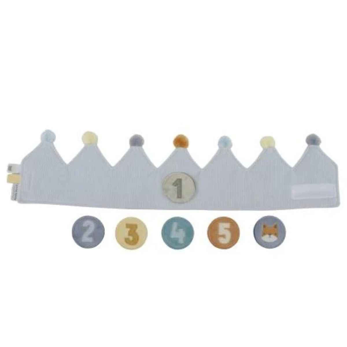 The crown is made of soft padded and ribbed fabric in light blue topped with coloured pompons. The Velcro closure allows the crown to adapt and grow with your child. Watch your little one proudly wear the crown, showcasing his or her age with every smile and giggle. Happy celebrating!
