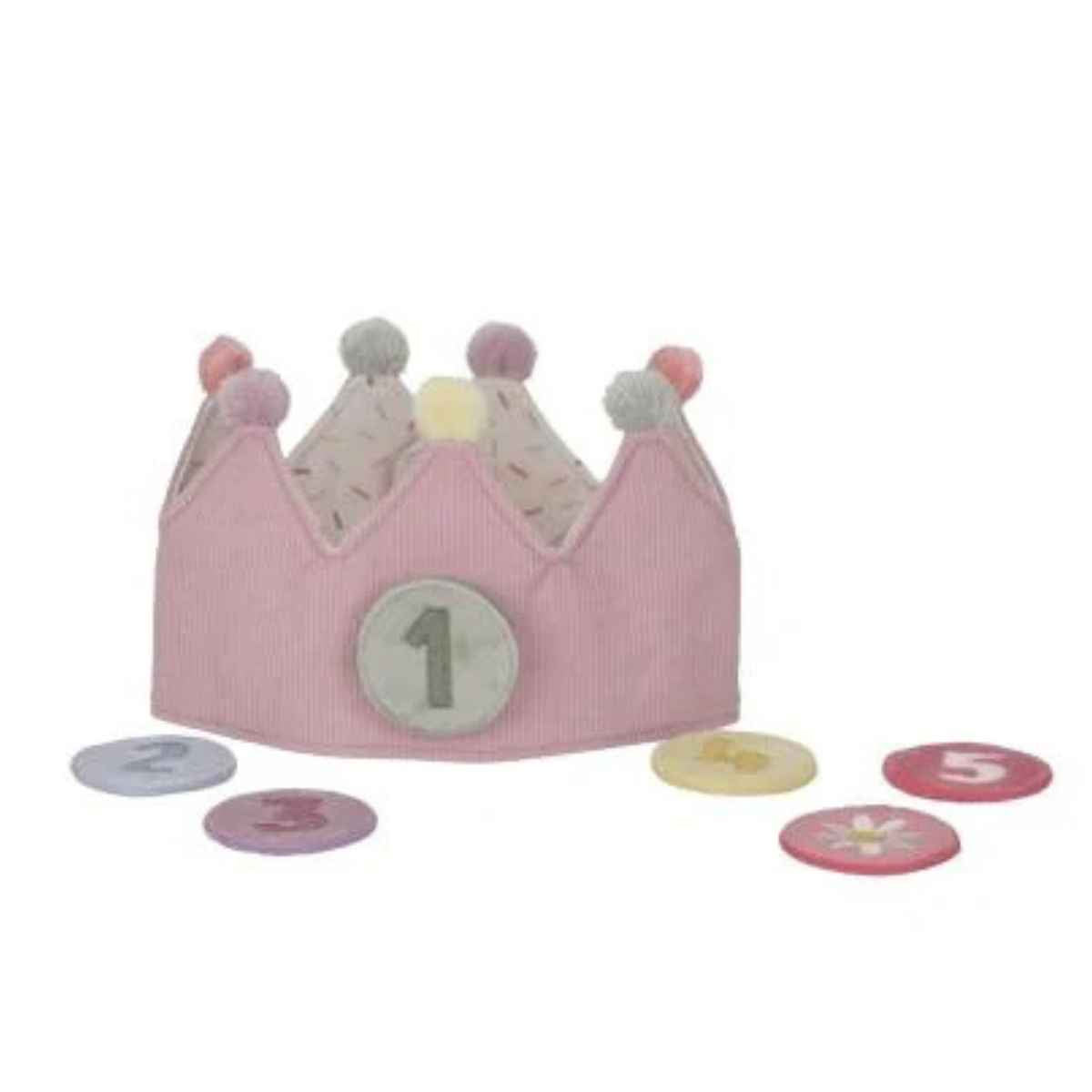 Hip hip hooray! Celebrate your birthday in style with this cute birthday crown and sprinkle some fairy-tale magic over your special day. Change the number each year from 1 to 5 so the crown grows with every milestone of your little one. Choose the birthday number, put on the crown, and capture those precious moments! Or choose the emblem with the flower when your little one wants to be the king or queen of wonderland every day. The crown is made of soft padded and ribbed fabric in light pink, finished with colored pom-poms. Thanks to the Velcro closure, the crown grows with your child. Watch how proudly your little one wears the crown and shows their age with every smile and giggle. Happy birthday!