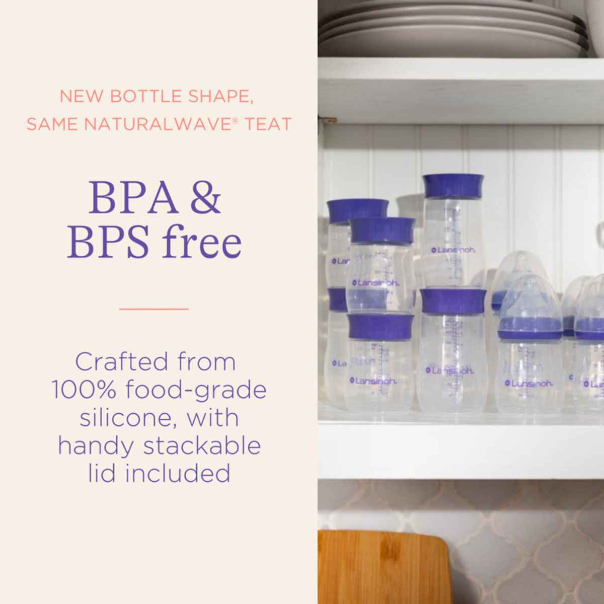 Our Lansinoh’s BPA and BPS free baby bottles, now with an innovative new shape, have been carefully crafted for a comfortable hold while feeding baby.