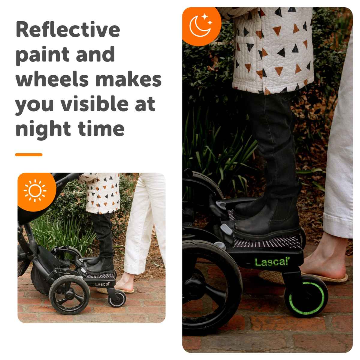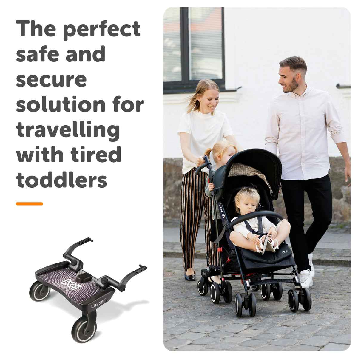 The original ride-on platform! The Lascal Maxi BuggyBoard® provides a safe and practical solution for tired toddlers aged 2 – 5, offering secure attachment to most pushchairs and ensuring a comfortable ride on any terrain – no need for a double buggy!