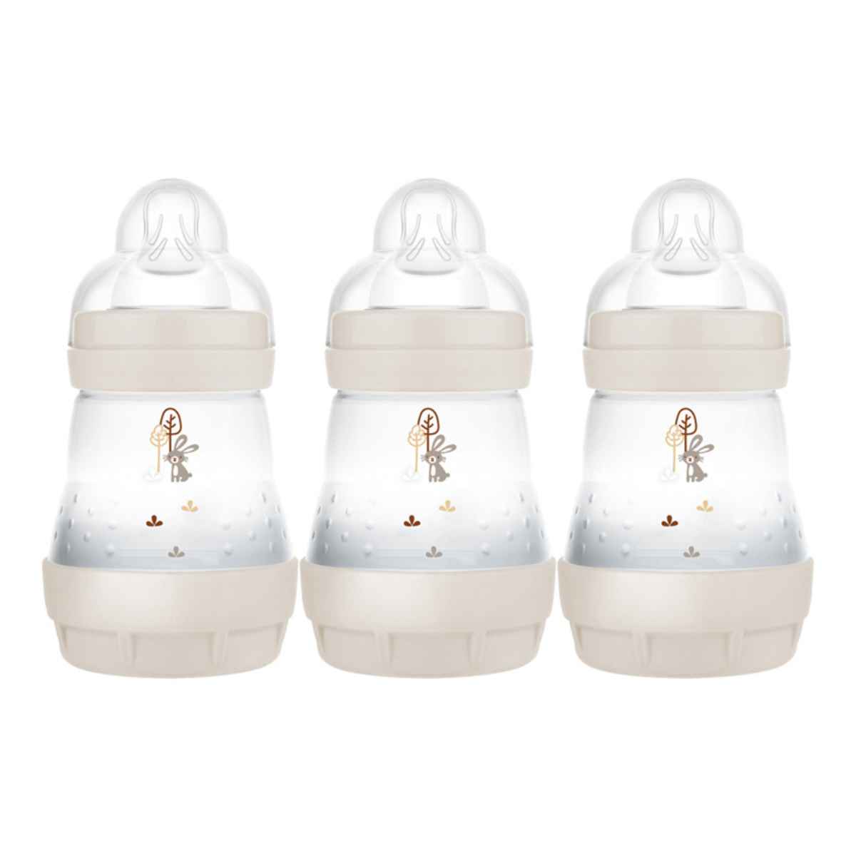 The MAM 160ml triple pack bottles are anti-colic and feature a lovely unisex design and clear measurement markings.