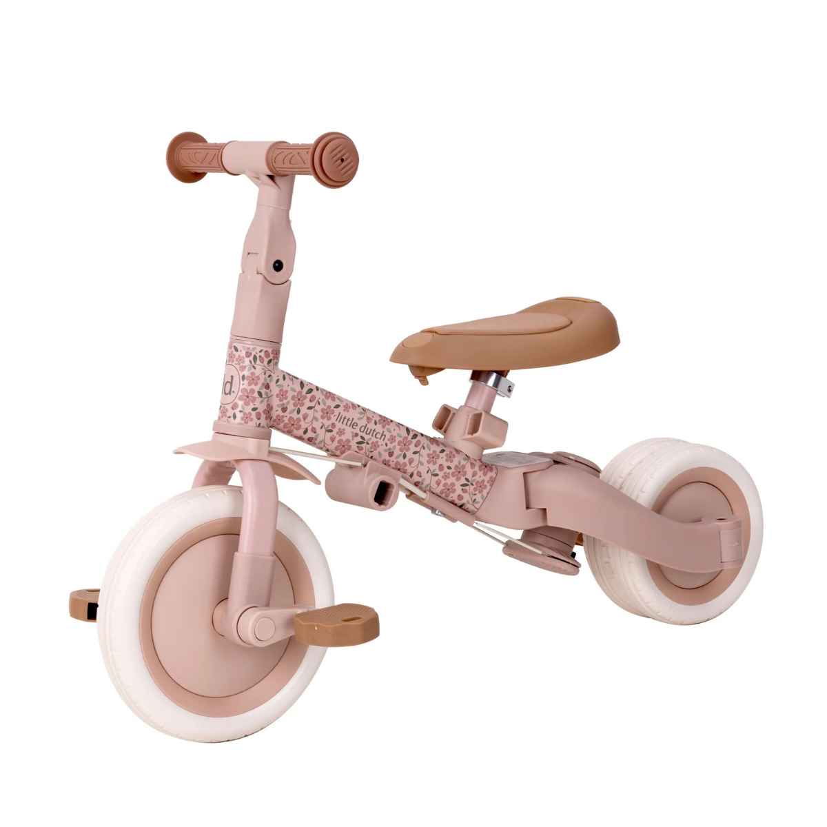 Hop, time to go out! With this beautiful soft pink and brown detailed 4-in-1 balance bike, the first (bicycle) adventures are made like this. Ideal to get to know cycling in a playful way. Can't your little one walk or cycle yourself? No problem, the push bar helps you a hand. Safety for everything, thanks to the belt and the safety ring, which can easily be removed if they are no longer needed. From tricycle to balance bike in an instant - and the pedals? You can easily store it under the saddle! Light, compact and adjustable for children from 1 to about 3 years.