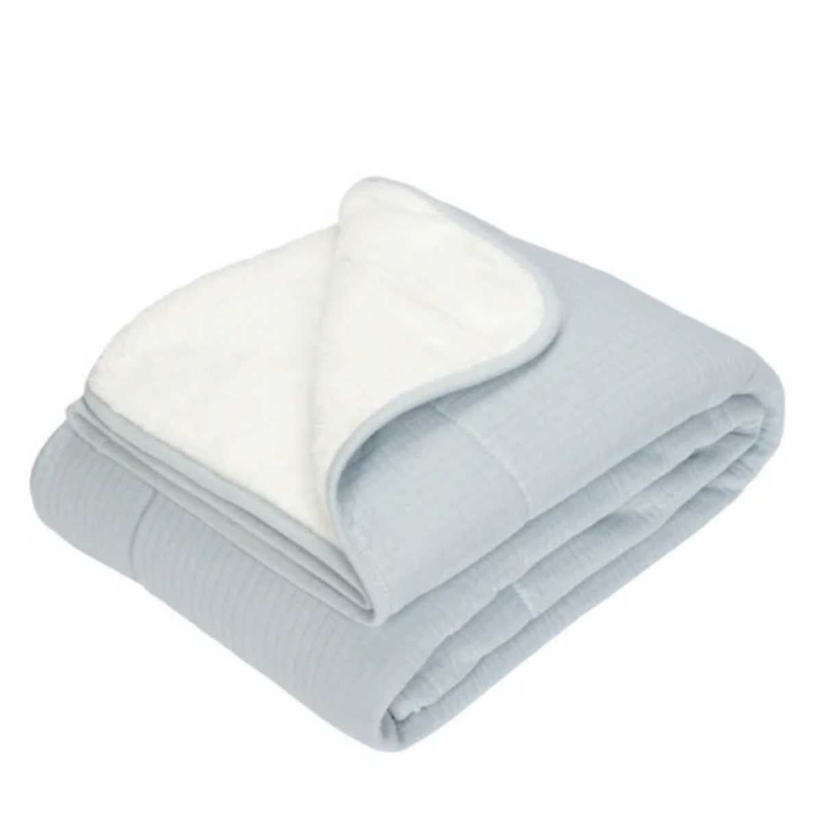 A cradle blanket keeps your little baby at a good temperature. The blanket has a soft jersey fabric on one side and a wonderfully soft teddy fabric on the other. Complete the bed with a cradle sheet and fitted sheet. A cradle blanket is also handy to use in the stroller or as a wrap. This one from the Pure Soft Blue collection has a beautiful, soft blue color that is perfect for combining. You can simply wash it in the washing machine at 30 degrees! It has a TOG value of 3.3.