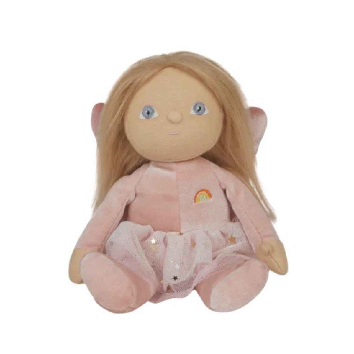 Dressed in a sparkly pink onesie and a starry tulle skirt, Fairy Fiona is made for fluttering fun and snuggly moments. Her soft, posable body is just the right size for little hands and magical adventures on the go. With twinkly wings and a sweet rainbow stitched over her heart, she’s full of charm and cheer.