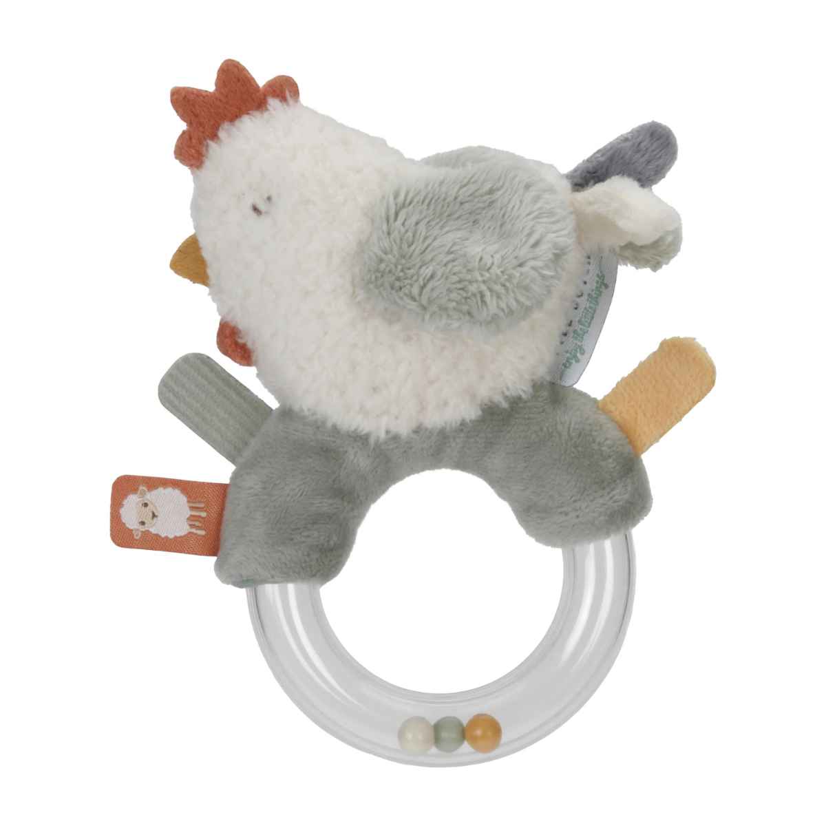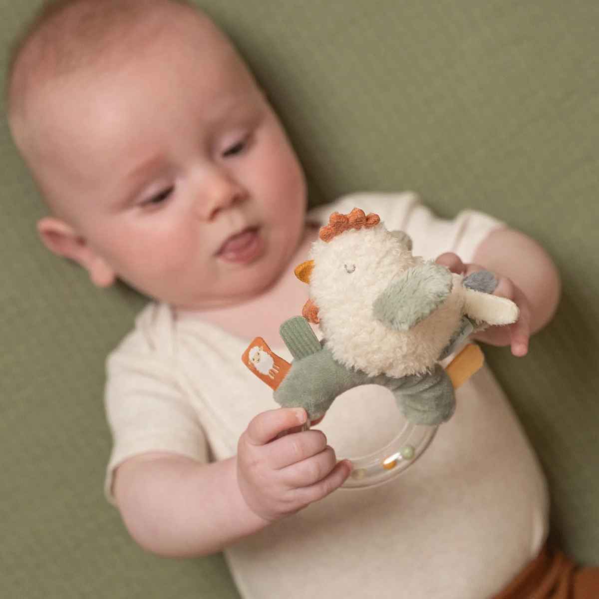 Grab, turn and shake! This ring rattle in the shape of a chicken will stimulate your baby's curiosity. Klapper with the wings or rub over the soft belly. The transparent ring is filled with 3 small beads that rattle when your child plays with it. This attractive baby toy improves hand-eye coordination and stimulates the senses.