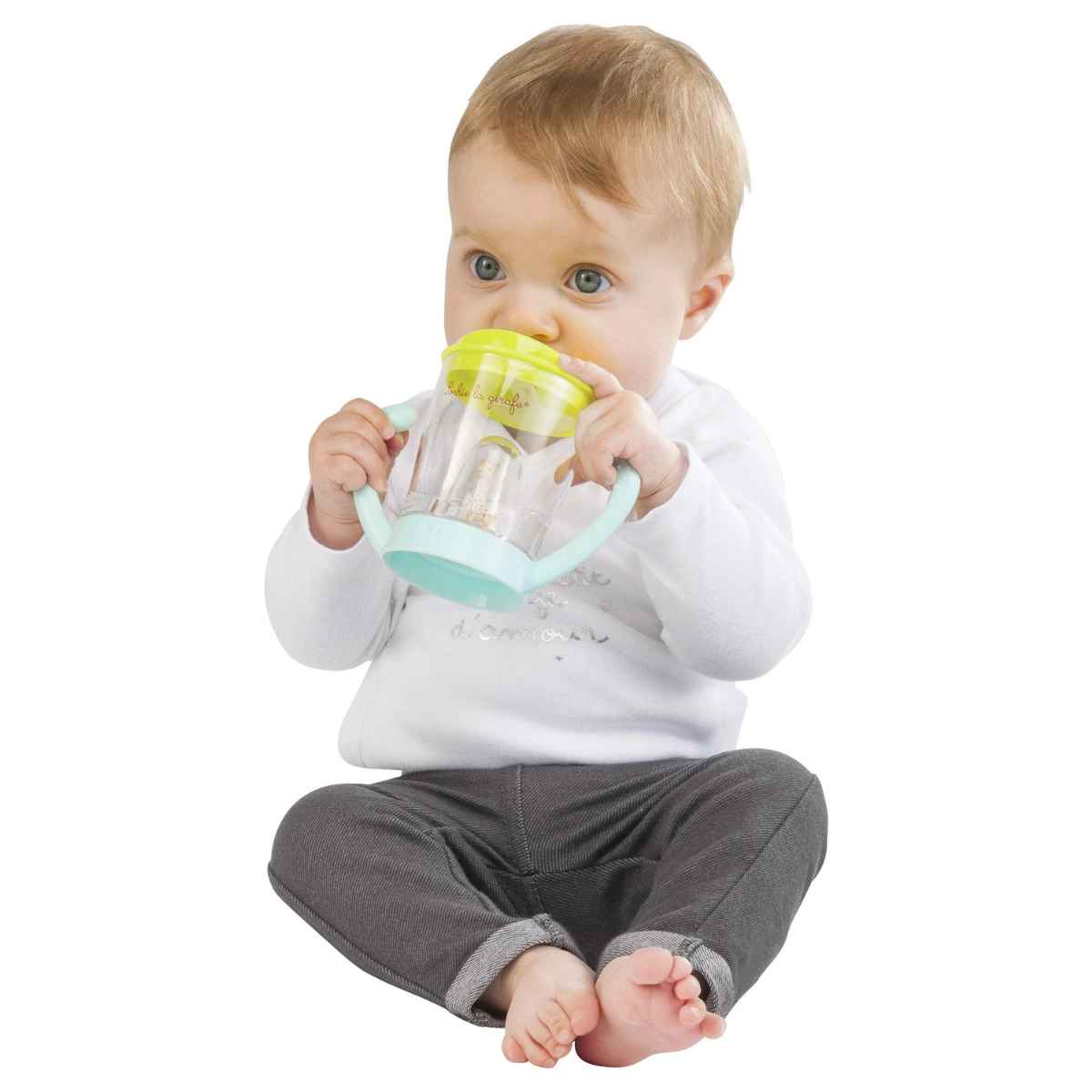 This cup prevents spills whether it's upright or flipped over! Designed with an ergonomic spout that encourages a natural sucking motion like a baby bottle, it’s perfect for helping your child move from bottle to cup. A smart, removable valve in the spout offers two drinking options: with the valve, it minimizes leaks and dribbles by requiring suction; without it, the cup flows freely for easier drinking. Plus, the two textured handles provide a secure grip, making it simple for little hands to hold and use.