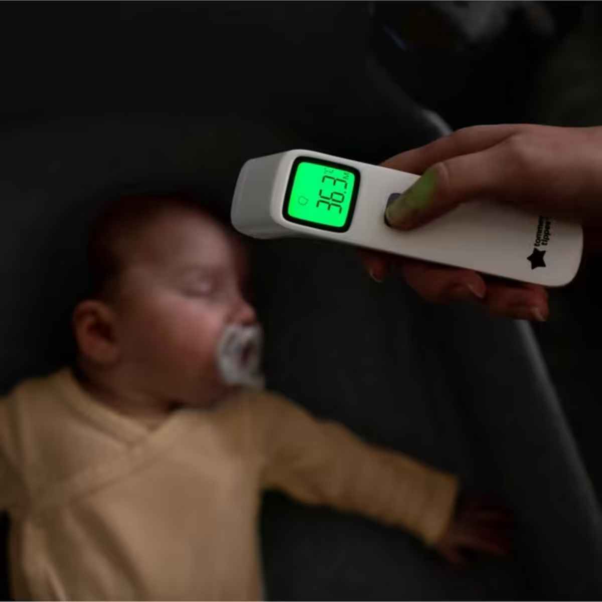 The Tommee Tippee NoTouch Digital Forehead Thermometer provides you with instant and highly accurate temperature readings. Suitable for the whole family, simple hold it 1-3cm from the forehead, press start and get a result in one second on the clear LCD screen. It switches easily between Celsius and Fahrenheit and alerts you with a red light and alarm if a fever is detected. It stores the last 20 readings to track temperature changes and can also check bottle temperatures, ensuring your baby’s comfort and safety every time.