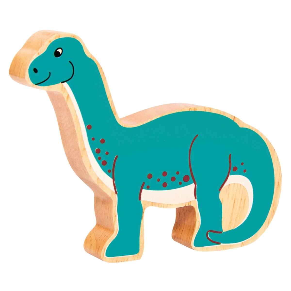 Love dinosaurs? This colourful natural wooden diplodocus figure has a green design with a beautiful wood grain edge making each one unique.