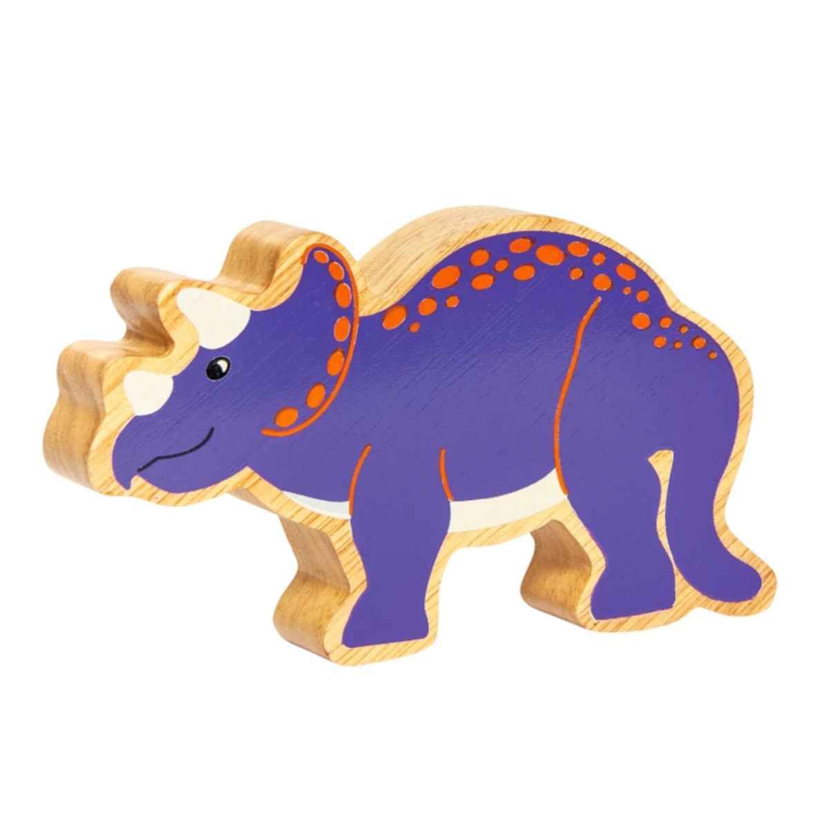 Love dinosaurs? This colourful natural wooden triceratops figure has a purple design with a beautiful wood grain edge making each one unique.